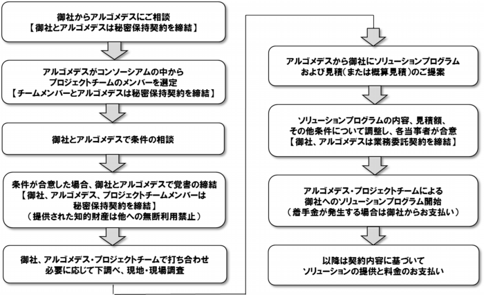 御社から当社へは次の手順でご相談いただき、契約および業務を進めさせていただきます。